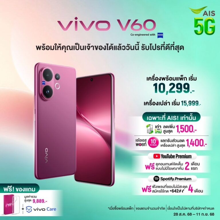 เปิดตัว Vivo V60 กับโปรเด็ดจาก AIS ราคาสุดคุ้มมาพร้อมของแถม!